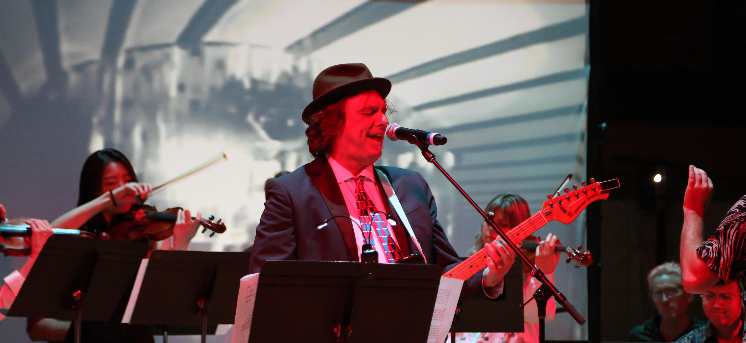 Dren performing at The Residents Secret 50th Annivesary show in San Francisco, 2023 w/ Josh Freese and the San Francisco Conservatory of Music Ensemble - photo: Josh Keppel